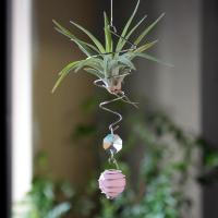 空気中の水分を吸って生きているエアプランツを、窓辺に下げたりしてお楽しみいただけます。 お部屋のインテリアのアクセントにオススメです♪ <サンキャッチャー/ローズクオーツ・丸玉> “愛とやさしさの象徴”とされ、女性の内なる美しさを輝かせてくれるパワーストーンとして人気のローズクォーツを、小振りなサンキャッチャーと組み合わせました♪サンキャッチャーは太陽の光を浴びるとお部屋に虹色の光を運んでくれます。 【サイズ】 テグス:約35cm/ホルダー:8cm/ローズクオーツ:20mm玉/全長:約45cm 【材質】 テグス・ステンレス・ガラス・天然石(ローズクオーツ) |