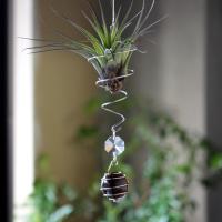 パイナップル科 北米南部、中南米原産 チランジアは土で植えなくても育つため、エアープランツと呼ばれます。 商品は透明のガラスハンギングとセットで吊って飾れます。 <エアープランツの管理> 置き場所: 明るい日陰(レースのカーテン越しの日が入る部屋など)で風通しのよいことが基本です。 水やり: 霧吹きなどで株全体に水をかける「葉水」と洗面器などに水を張ってそこに株ごと浸して水を吸わせる「ソーキング」の2種類の方法があり、葉水は3〜4日に1回、ソーキングは2週間に1回が-........... |
