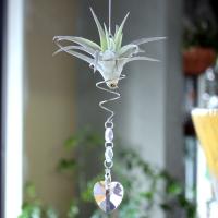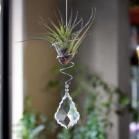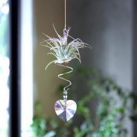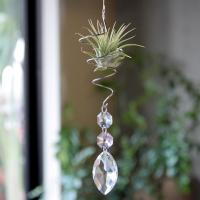 お部屋のアクセントに人気のサンキャッチャーにエアプランツをプラス! 曲線のカットがシャンデリアを思わせる大粒のリーフ型のサンキャッチャーです♪ 空気中の水分を吸って生きているエアプランツを、デスクの上でお楽しみいただけます。 お部屋のインテリアのアクセントにオススメです♪ 【サンキャッチャー/リーフ】 サンキャッチャーは太陽の光を浴びるとお部屋にたくさんの虹色の光を運んでくれます。 大粒のリーフ型は吊るすだけでもシャンデリアのようです。 【サイズ】 ホルダー:高さ190mm × 幅70mm 【材質】 ステンレス・ガラス 【ご注意】 エアプランツの種類はお選びいただけません。