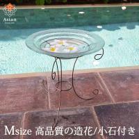 ガラス、水盤、花器、花瓶、ボウル 透明感あるブルーの色合いと、小さな気泡が散りばめられたガラスの質感はとても涼しげで、爽やかな雰囲気を演出してくれそうです。 スタンドは少しさびれたようなアンティークカラーで渋くておしゃれ! 付属品 ・プルメリア造花 Lサイズ:5個 (色はおまかせとなります) ・スノーストーン(小石) 注意事項 ・ガラス製品の特性上、気泡や黒い点などが混じる場合がございますが、予めご了承ください。 ・スタンドはアンティーク仕様の為、塗装剥げがあります。 水盤サイズ:直径/約30cm 高さ/約8cm スタンドサイズ:上部直径/約20cm 高さ/約29cm 下部脚の幅/約32cm 素材:ガラス・アイアン 生産国:インドネシア バリ島 |