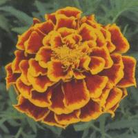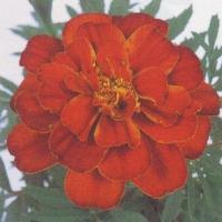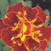 赤色に橙色覆輪。 【ボナンザ系】 フレンチ系は草姿がやや矮性で横に広がり、比較的小さめの花がたくさん長期間咲くのが特徴。 夏の強い日差しのなかでも花つきがよく、早咲きタイプの大輪で草丈約20cm。 花径5〜6cm。 「聖母マリアの黄金の花」の意味を持ち、その黄金を連想させる花色が特徴で人気がある。 フレンチ系(孔雀草)とアフリカン系(万寿菊)の大きく2つに分けられるが、両方の種間雑種も増え、様々な品種が出てきている。 キク科 |