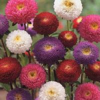花径3cm内外のポンポン咲きで、マリ形に盛り上がって咲く。 草丈約70cm、分枝力が極めて旺盛で多花性の中早生種。 赤・桃・紫・白色の混合。 (-........... |