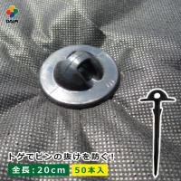 園芸 支柱 ガーデニング 家庭菜園 用品 用具 頭が打込みやすく、つまづきにくい形状です。 トゲが交互についていて、抜けにくいです。 先端が鋭角になっているので、分厚いシートにも差しやすいです。 ■色 黒 ■サイズ 全長約20cm ■材質 ポリプロピレン ■用途 防草シートのおさえに。 ■内容 50本入り ■備考 安全のため手袋等を着用し、作業を行って下さい。