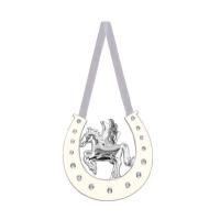 馬の蹄鉄は古くから欧州で「魔除け」や幸福を呼ぶお守りとする風潮が伝承され続けています。 上が開いているU字型なのでラッキーが転がり込み、くぼみで幸せを受け止め満たしてくれると云われています。 製造国:中国 素材・材質:亜鉛合金エポキシラインストーン 商品サイズ:10.5×10.5×0.8cm 仕様:吊りリボン付 |