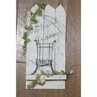 アンティークな雰囲気のフェンスプレート ミニチュアのチェアとフェイクグリーンつき w10xH22cm |