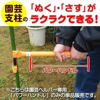 商品情報 支柱ヘルパー本体に取り付けると柄の長さが全長40cmになり、両手でしっかりと握ることができ、いっそう楽に支柱を抜くことができます。 サイズ(約) 直径25×長さ330mm 重量 300g 材質 本体:スチールパイプ製 キャップ:ポリエチレン製製 備考 ※本製品は「園芸支柱ヘルパー」の専用パーツです。 本製品を使用するには「園芸支柱ヘルパー」本体が必要です。