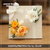 スカビオサとバラをメインに小花を周りに配しました。 オレンジ花で元気な明るい雰囲気のフレームフラワーです。 置物にも壁掛けにもなるので、お好きなところに飾ってください。 もちろん、プレゼントにも最適です♪額の大きさは12cm角/スカビオサ1輪、バラ(S)1輪、バラ(SS)1輪使っています。 ※お花はご注文いただいてからお作りするため、5営業日程お時間がかかります。 お手数ですが、お日にちの余裕をみてご注文をお願いいたします。