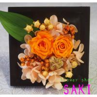 長期間楽しめるお花、プリザードフラワーです。 高さ20×幅20×奥行7cm セロファンに包んでリボンをつけて箱に詰めてお届けします。