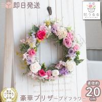 母の日 ギフトプレゼントに最適 ローズやあじさい、ドライフラワーを使った落ち着いた色あいのナチュラルなフラワーリースです。 玄関やお部屋に飾れて、ラベンダーの香りがほのかに香る、素敵なインテリアに。 【素材】プリザーブドフラワー(バラ、ライスフラワー、あじさい)・ドライフラワー(ラベンダー、タタリカ、ペッパーベリー、センニチコウ)・ひげつる・リボン 【サイズ】約横170mm×奥行き170mm×高さ70mm お花は、特殊加工をしたプリザーブドフラワーなので、いつまでも枯れることなく飾っておくことができます。 ※自然素材のため、写真と異なりますのでご了承ください。 多少花材がかわる場合もあります。 【特徴】お花は、特殊加工をしたプリザーブドフラワーなので、いつまでも枯れることなく飾っておくことができます。