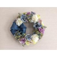 商品名:白樺の小枝スワッグ<br> 素材:プリザーブドフラワー<br> ブルーアイス、クジャクヒバ<br> 白樺ベース、コットン、ユーカリの実<br> 他<br> サイズ:幅約15センチ、高さ30センチ<br>mothersday0514 |