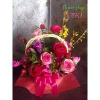 赤いバラを中心に、ピンク色の可愛らしい花々をあわせてお作りいたしました。 とても優美で可愛らしいアレンジメントです。 ご用途:誕生日・記念日・お祝い・歓送迎・結婚祝い・結婚記念日 |