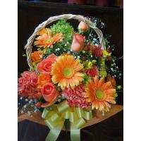 母の日の贈り物に喜ばれているオレンジの カーネーションを使ったビタミンカラーのアレンジです。 元気なイメージのお母さんにぴったりです。 高さ22×幅20×奥行18cm ※サイズは、ご相談ください。 |