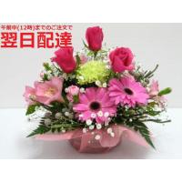 翌日配達「あすつく」アレンジメント 送料無料 ピンクのバラを中心に、ピンクのガーベラと小花を添えてお作りいたしました。 とても可愛らしいアレンジメントです。 とても人気があります!! ご用途:誕生日・記念日・お祝い・歓送迎・結婚祝い・結婚記念日 |