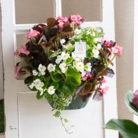 ※本商品は「北海道・沖縄へは送料別途500円、東北へは送料別途300円」加算されます。 ご了承ください。 商品概要 商品について 育てやすくどんどん成長していくベゴニア。 初心者の方でも水遣りだけで見事に豪華に育てることが出来るので、夏のおうちにオススメの一品です。 商品内容 ・ハンギングバスケット寄せ植え+S字フック1つ ・管理方法マニュアルプリント ・主要植え込み植物についての詳細マニュアルプリント 使用植物 ベゴニア・センパフローレンス(ベゴニヤ)、アイビーなど 約8〜10株前後 容器サイズ 「伊藤商事製スリットバスケット(slt25)」 縦23cm×横25cm×奥行き17cm 約3kg 出来上がりサイズは、正面から見て直径約25〜30cmのボール状です 開花期 夏〜晩秋まで (5〜11月) 管理のポイント 【置き場所】 屋外専用。 明るい軒下などが最適です。 明るい場所で、土が乾いたらた.........__ |