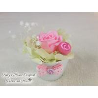 ピンクローズ、あじさい、かすみそうのプリザを使用したコロンと可愛いサイズのプリザです♪ 価格も1,000円とお手頃なので、プリザを手に取るのは初めてという方やプチプレゼントをお探しの方におすすめ♪ 枯れないお花、プリザーブドフラワーは お誕生日や結婚記念日などのお祝い、お部屋のインテリアに最適です♪ ■サイズ 約 高さ5cm×径7cm |