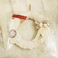 クリスマス用リースです。 リースに緑と白の毛糸を巻いてモコモコに! フェルトボールやキラキラボールでアレンジしてあります。 クリスマスのアクセントに是非どうぞ! |