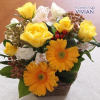 ペールトーンの花を使った、ラブリーキュートなアレンジです。 送料無料 高さ約30×幅約25×奥約25cm ※サイズは、ご相談ください。