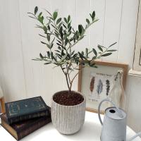 ややシルバーがかった小ぶりな葉と樹形が素敵な常緑樹で、おしゃれなカフェやレストランにも多く使われ、洋風化した日本の住宅のシンボルツリーとしても人気の高いオリーブ。 品種や育てる環境により実が付き始める年数や、実のサイズや数量は変わりますが、そのうちオリーブの実が収穫できるようになります。 雄雌同株で両性花をつけますが、オリーブは2本以上隣接して植えたりする方が実が付きやすいといわれています。 そんなオリーブをアンティーク陶器仕立てでご用意しました。 ■花材:オリーブ ■資材:陶製鉢6号(鉢皿付) ■サイズ:H約60cm、W約20cm ■送料:648円 ■お届け日:2017/05/05〜2017/06/30 (2017/06/25/16:00までのご注文であれば上記期間内で指定可) |