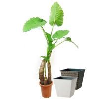 クワズイモは成長が早いので「出世芋」と呼ばれ、縁起物として「開店祝い」や「事務所開き」などの新しいことを始めるときのギフトとして贈ると喜ばれます。 水やり 土の表面が乾いたら鉢底から出るまでたっぷりと与えて下さい。 冬季期間中は徐々に回数を減らします。 根腐れの原因になりますので、受皿にたまったお水は捨てて下さい。 また定期的に霧吹きなどで葉の部分にもお水を与えてください。 こちらはプラ鉢です。 SIZE 全高:約53センチ(葉を含む) ポット高:約26センチ ポット含む高さ:約77センチ ※実寸になります。 若干の誤差はご了承さい。 植物ですのでお届けまでに葉や花が落ちるなど 変化がある場合がありますのでご理解願います。 店舗と在庫が共有のため在庫有りでも在庫切れの場合がございます。 ご了承下さい。