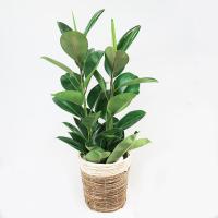 観葉植物、ゴムの木 ゴムノキ ロブスター 7号鉢(直径21cm)、かご鉢カバー、受皿付。 高さ約90cm。 ・クワ科フィカス属(イチジク属) ・学名:Ficus elastica "Robusta"。 ・非耐寒性、常緑高木。 ・北西インドからインドシナの原産。 ・生育適温:13〜30℃程度 ・越冬温度:乾かし気味に管理して5℃以上 ・”ロブスター”はインドゴムノキの枝代わりで、代表的な品種です。 ・置き場:日光を好むので一年中、明るい所に置きます。 耐陰性もありますが、光量不足になると、葉が垂れたり、色が悪くなったり、落葉することもあるので、窓の近くや、照明の下など置きます。 ・水やり:鉢土の表面が乾いたら、しっかりやります。 霧吹きで株全体に葉水をかけて、空中湿度をあげます。 冬は乾くのを待ってあげます。 ・肥料:生育期に緩効性化成肥料を与えます。 冬はやりません ・.........__ |
