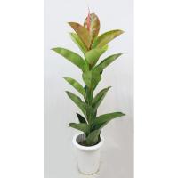観葉植物、ゴムの木 ゴムノキ ロブスター 7号鉢(直径21cm)、受皿付。 高さ約90cm。 ・クワ科フィカス属(イチジク属) ・学名:Ficus elastica "Robusta"。 ・非耐寒性、常緑高木。 ・北西インドからインドシナの原産。 ・生育適温:13〜30℃程度 ・越冬温度:乾かし気味に管理して5℃以上 ・”ロブスター”はインドゴムノキの枝代わりで、代表的な品種です。 ・置き場:日光を好むので一年中、明るい所に置きます。 耐陰性もありますが、光量不足になると、葉が垂れたり、色が悪くなったり、落葉することもあるので、窓の近くや、照明の下など置きます。 ・水やり:鉢土の表面が乾いたら、しっかりやります。 霧吹きで株全体に葉水をかけて、空中湿度をあげます。 冬は乾くのを待ってあげます。 ・肥料:生育期に緩効性化成肥料を与えます。 冬はやりません ・増やし方:挿___........ |