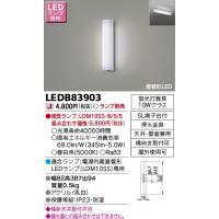本情報> 形名 LEDB83903 希望小売価格 4,800 円(税別) 品名 LED別売 品種名 LED屋外 商品ー 13600192 JANー 4974550478663 発売日 2014年06月15日 ∠細商品情報> ー 幅80 高385 出95mm 質量 1kg 材質 (乳白) 消費電力 5 W 器具光束 345 lm 固有ー消費効率 69.0 lm/W 推奨形名 LDM10SS・N/5/5 機能・特徴(写真内表記)1 LED別売 機能・特徴(写真内表記)2 直管形LED 機能・特徴(その他)1 蛍光器具 10W 機能・特徴(その他)2 防湿・防雨 機能・特徴(その他)3 天井・壁面兼用 機能・特徴(その他)4 横向き取付可 機能・特徴(その他)5 最低照射面距離0.1m ※返品については、お箸物をご覧ください。