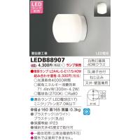 TOSHIBA ℃d様 > 形名:LEDB88907 希望小売価格:4,300 円 (税別) 品名:LED浴室灯 商品ー:12800090 JANー:4974550457842 発売日:2013-05-16 ■特記事項1:別売 ■特記事項2:LED電球形5.7W以下(E17) |