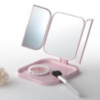 ■の等に便利なな三面鏡 ・:鏡 正面/110*160mm 扉/53*150mm 枠/128*169*13mm ・重量:271g ・材質:鏡、PS樹脂