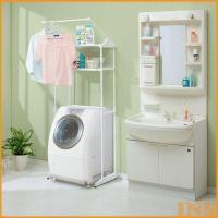 でなーです。 洗濯機に合わせて幅の調節が可能です。 下段の棚は2段階で高さを変えられます。 ・商品(約):幅65〜85×奥行29×高さ156cm ・耐荷重:全体6kg、棚1枚あたり3kg ・材質:ー(塗装) (ー) (検索用:ー・洗濯用品・) |