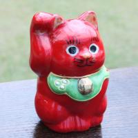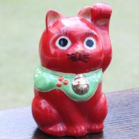 九谷焼金(素地:石川県産、加飾:九谷焼産地) 素材:磁器 :幅4.5cm×奥行4.5cm X 高さ7cm 一点一点手描きで、表情豊かな九谷焼の招き猫。 ちょこんと手のひらに乗るで、机や本棚に置くと、目が合うたびになんとも微笑ましい気持ちになります。 右手をあげているのはお金、左手をあげているのは人や縁を招いてくれます。 赤い招き猫には、勝負運や病気除けの意味があるといわれています。