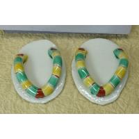 W4.5cm××D6.3cm×H1.8cm、化粧箱入り 神事や信仰民具によく用いられる藁で編み上げられたわらじには、不思議な霊力があると信じられてきました。 「厄除けのおまじない」や「足腰が丈夫であるための守護神」として、昔は民家の軒先に新しいわらじを下げたそうです。 藁のわらじがせっせと手で編んで作られたように、九谷の土で小さなわらじを手びねりで作ってみました。 色絵を施し可愛いおまじないの出来上がりです。 小さな演出で大きな福を呼び寄せてください。 |