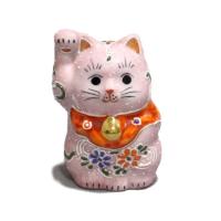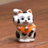 九谷焼金(素地:石川県産、加飾:九谷焼産地) 素材:磁器 :幅4.5cm×奥行4.5cm X 高さ7cm 一点一点手描きで、表情豊かな九谷焼の招き猫。 ちょこんと手のひらに乗るで、机や本棚に置くと、目が合うたびになんとも微笑ましい気持ちになります。 右手をあげているのはお金、左手をあげているのは人や縁を招いてくれます。 の招き猫には、恋愛運を上げる意味があるといわれています。