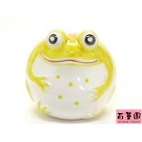 九谷焼金(素地:石川県産、加飾:九谷焼産地) 素材:磁器 :幅7.5cm×奥行7cm×高さ8cm 箱:紙箱 九谷焼縁起置物ーとして非常に人気の蛙(かえる)。 もで表情がとても愛くるしく、置いておくだけで癒されます。 蛙(かえる)は子供をたくさん生むところから「子孫繁栄」にご利益があるとされ、語呂合わせからも「無事」「お金が」「若」などがあります。 ご自宅で幸福を招くもよし、贈り物としても喜ばれる縁起物ーです。