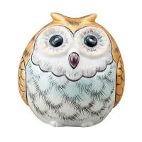 九谷焼金(素地:石川県産、加飾:九谷焼産地) 素材:磁器 :幅7.5cm×奥行7cm×高さ7.5cm 箱:紙箱 九谷焼ならではの豪華絢爛さが光る、贅沢なふくろうです。 「不苦労(苦労知らず)」「福来朗(福が来る)」に通じ、縁起の良い鳥とされているふくろうは、世界各地でも、知恵・英知の神として、大切にされています。 勉強机の上に置いておくと、学力の力を授けてくれそう。 風水では、は愛情・人気運を上げてくれるといわれています。