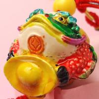 金運・財運をのちゃん☆頼もしいです♪ 三脚蛙は、財を見つけると、後ろ脚が〜と伸びて自分の前方と左右にある「財」に飛びつき、その財をすべてかき集め、くわえているために三本脚になったと言われ、財運をさせるとして頼もしい☆ なかでもを発展させるーがあると言われています!! さらにこの三脚蛙は「古代からの強い財運を受け継ぐ」という意味の風水古銭(元宝)を持っています。 結び目の形は、縁起の意味があり「良縁を結びつなげる」力を宿していると言われます。 三脚蛙:約幅3×奥行き3×高さ2.3cm 全体長さ:約24.5cm 樹脂製 ※三脚蛙部の上下についている玉の色は写真とは異なる場合ございます。 予めご了承ください。