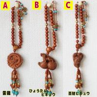 全7種類の中から数珠型根付けが選べます。 A.雲龍 平安無事・仕事運・出世運を願う方にぴったり☆運気上昇の雲龍! B.ひょうたん 平安無事・健康運・運を願う方にぴったり☆ C.百財 貔貅 「数え切れないほどたくさんの財」を表す「白菜(=百財)」に乗っかったで金運祈願 D.招財進宝 貔貅 金銀財宝の詰まった財袋に乗っかったで金運祈願 E. 睚眦 金運・財運・仕事運、全てを招くと言われる風水の戦士! F.ひょうたん 瓢箪 無病息災・健康運祈願にぴたりのひょうたん G.上元宝布袋 七福神の一人。 福と財を呼ぶといわれる風水です。 金運の塊「元宝」を掲げています☆ 全長:約40cm 根付け部材質:木製 装飾部材質:木製及び樹脂製 ※根付け部、数珠部が木製のため、形状や大きさ、色合いなどに若干の差異がある場合がございます。 予めご了承くだ___........ |