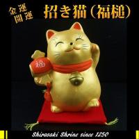 右手を挙げている猫は金運を招き、左手を挙げている猫は人(客)を招くとされています。 一般には三毛猫ですが、近年では色によっても意味が違います。 「学業向上」や「交通安全」 「恋愛」 「魔除け」「厄除け」 「病除け」 高さ 約13.0cm、横幅 約11.0cm,奥行 約10.0cm 紙箱 金色の招き猫が貯金箱になっています。 ※注意 この招き猫はゆうでの配送はできません。 ゆうを選択して注文した場合、送料を変更して佐川急便で発送させていただきます。 |