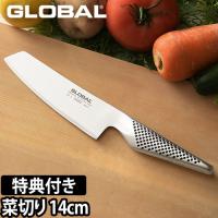 GLOBAL ー包丁 GS-5 菜切り 刃渡り14m 野菜切りに向く包丁です。 刃元が角ばっているので野菜の芽取りに便利です。 小さいの菜切り包丁です。 ■ 全長:26.0cm /刃渡り:14.0cm / 重量:120g /刃付け:両刃(右利き・左利き兼用)/用途:野菜切り |