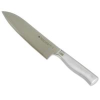 柳宗理は従来の菜切りや牛刀等の形状にとらわれず、使い易さを追求した形状・となっております。 長時間使用しても疲れが少なくすむよう、形状と共に重量もごとに検討されております・ ・を添加した切れ味が長続きする特殊鋼を中心部に、粘り強い13ーでした3層鋼を使用しております。 この材料は鋭い切れ味と、折れにくさ、錆びにくさを併せ持つ刃物用ので、熟練の職人が一本一本丁寧に本刃付けを行っており、研ぎ直しが可能です。 、ともに18-8を使用しており、従来の木製に比べ雑菌の繁殖を防ぎ大変衛生的です。 食器洗い機による高温高圧(180度まで)洗浄が可能です。 型式名:18cm ーー:佐藤商事 株式会社 :刃渡り18cm/全長30.5m JAN.........__ |