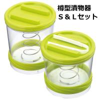 食材を入れて蓋を閉めるだけでに浅漬けができる、樽型漬物器。 大(1200ml)小(900ml)各1個ので重ねて収納できます。 蓋に収納できる便利な付。 内容/樽型漬物器S×1、樽型漬物器L×1、×1 材質/本体:AS樹脂(耐熱温度80℃)、:18-8鋼、 蓋・たが:樹脂(耐熱温度60℃)、 おさえ:(耐熱温度120℃)、 :(耐熱温度120℃) 容量・重量/樽型漬物器S:900ml・250g、樽型漬物器L:1200ml・295g 商品/樽型漬物器S:径13×11cm、樽型漬物器L:径13×14cm 箱/約12.8×12.8×26.3cm 日本製 |