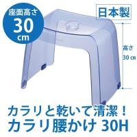 商品名: 腰かけ 30H ー:ー :38×25.5×30H(cm) 材質:飽和樹脂、 日本製 浴槽に掛けて乾かせます。 浴槽のへに掛けて乾かすことができます。 通気性が良い設計になっているから、 空気が流れやすく湿気がこもりません。 は、に負けない 透明な樹脂製(飽和樹脂)です。 より軽くて丈夫なのが魅力。 また、美しいを描いた緩やかな 3次元曲面がおしりにやさしくし 心地よい座り心地です。