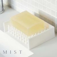 点で支えるから石鹸が乾きやすく長持ち。 斜面で水を切ることができるー。 石鹸がこぼれ落ちないように3方向に壁を設けています。 斜面になっているので石鹸の水を流してくれます。 柔らかい製なので、お手入れも簡単です。