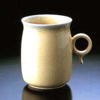 白山陶器の作品ですと取っ手が一体となった丸みのある作りがかわいらしい逸品です☆をわずかに反らせてあるので、飲み物の繊細な風味を引き出します |
