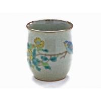 九谷焼のお洒落で便利なお湯呑です。 転写ー焼成では九谷焼の認知度が高い花鳥柄でございます。 保温性に優れる陶器であり毎日に便利な洗いやすく飲みやすい形状でございます。 女性様の手ぴったりで165g前後の重量で違和感なくお持ちいただけます。 裏まで絵柄が楽しめまる付です。 温かみとやわらかさが特徴の土物でございます。 直径:6.8×高さ7.9cm 重量:165g前後 容量:170ml 梱包形態:化粧箱 |