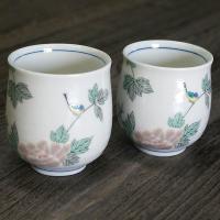 九谷焼のお洒落で便利なお湯呑です。 転写ー焼成の淡くやさしいお色のです。 裏まで絵柄が楽しめまる付です。 保温性に優れる陶器であり毎日に便利な持ちやすく飲みやすい形状でございます。 女性様の手ぴったりで165g前後の重量で違和感なくお持ちいただけます。 直径:6.8×高さ7.9cm 重量:165g前後 容量:170ml 梱包形態:化粧箱 |