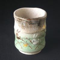 寸法:口径7.8cm×高さ9.3cm 初代東文吉(1854〜1913)は、陶祖斉田道開の弟子として陶技を習得。 その後多くの弟子を育成し九谷焼の発展に生涯を捧げた。 現在の文吉窯は、初代の頃の豪華絢爛な意匠とはかなり趣を異にするが、焼物に対するしたたかなこだわりをあくまでも継承し、1品1品手造り手描きの心のこもった「うつわ」造りに日々専心している。