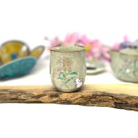 九谷焼のお洒落で便利なお湯呑です。 保温性に優れる陶器であり毎日に便利な持ちやすく飲みやすい形状でございます。 女性様の手ぴったりで165g前後の重量で違和感なくお持ちいただけます。 裏まで絵柄が楽しめまる付です。 温かみとやわらかさが特徴の土物での転写ー焼成で淡くやさしいお色でございます。 直径:6.8×高さ7.9cm 重量:165g前後 容量:170ml 梱包形態:化粧箱 |