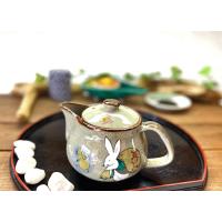 『九谷焼 酒井百華園公式』 九谷焼のお脱紅槌多用途性に優れる急須です。 淡くやさしいのに白兎のお色です。 便利性の面でも苧しが下まで付いておりちょっと一口の時も大変便利です。 遊び心の面では蓋裏に幸福の『打ち出の小槌』付です。 裏返し乾燥時まで淡い緑の兎柄が楽しめる『裏絵』付です。 こちらは転写ーの兎桜です。 『転写とは』 絵の具の付いた紙を貼り付けして焼成する方法です。 『お取扱い方法』 急須は生地の温かみと保温性が特徴の陶器を使用しております。 食器洗い乾燥機は水流が強く装飾が剥げることも十分考えられますので 手洗い+愛情でのご使用をお願い申し上げます。 『製品等』 直径14.2×高さ9.5cm 容量350ml 重量350g前後 梱包形態:黒箱 |