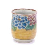 九谷焼のお洒落で便利なお湯呑です。 かわいいお花ーから明るいがく紫陽花です。 手描きでお伝えできる魅力を最大限にいかしました。 毎日に便利な洗いやすく飲みやすい形状でございます。 女性様の手ぴったりで165g前後の重量で違和感なくお持ちいただけます。 裏まで紫陽花柄が楽しめまる付です。 業界初高台つかない加工済みです。 温かみとやわらかさが特徴の土物でございます。 ふり(苧しのようなものでの絵の具を散らす技法)を使った淡く優しいお色です。 直径:6.8×高さ7.9cm 重量:165g前後 容量:170ml 梱包形態:化粧箱 |