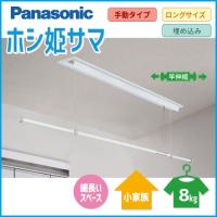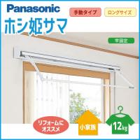 [Panasonic] 姫CWFE12CM 手動 天井直付け 竿の長さ:956〜1709mm 最大ー:天井面より約950mm 外形寸法:115x1200x高さ58mm 吊り上げ可能重量(洗濯物):8Kg 質量(商品重量):4.5Kg [注]衣類その他の物はすべて含みません。